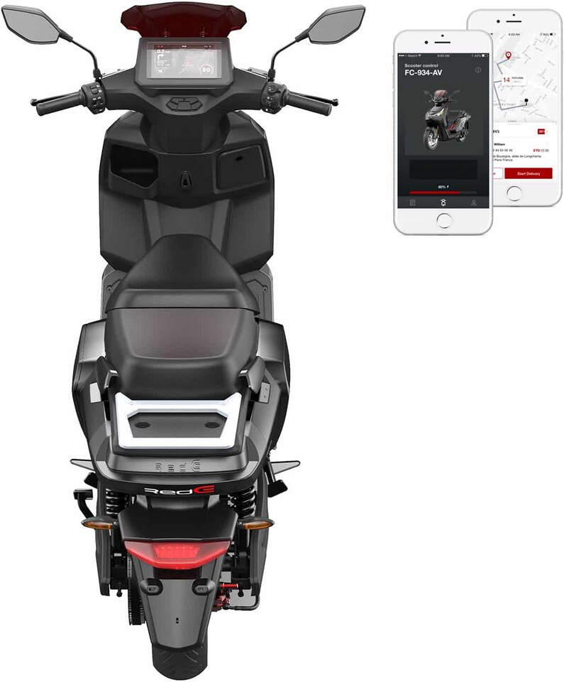 El scooter se conecta a un teléfono móvil y ofrece conectividad integrada 4G, Bluetooth, WIFI y NFC.