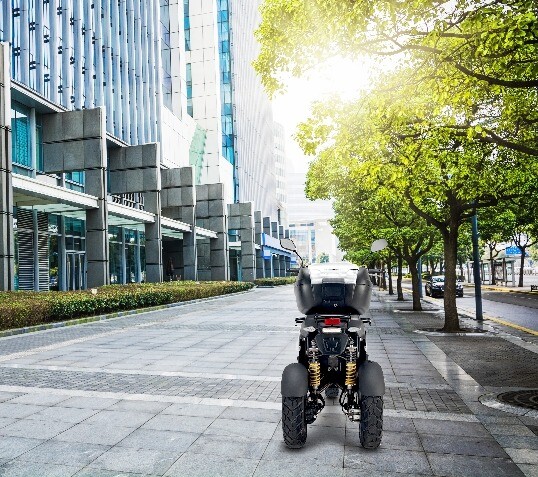 El S03 es una versión especial del popular scooter S02 con tres ruedas para mayor estabilidad y seguridad mejorada para conductores de motocicleta menos experimentados.