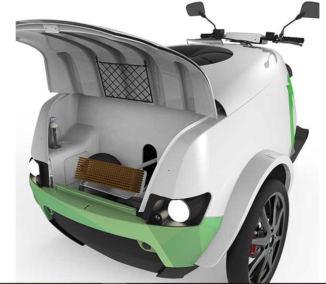 El patinete TRIPL cuenta con un espacioso compartimento de carga que puede acomodar paquetes grandes. El módulo de carga flexible puede personalizarse y configurarse según sus especificaciones exactas. Se puede equipar con un módulo de calefacción, refrigeración o congelación para la entrega de alimentos. También hay módulos para la recolección de residuos o un compartimento de herramientas. Incluso existe un módulo para un coffee-bar móvil.